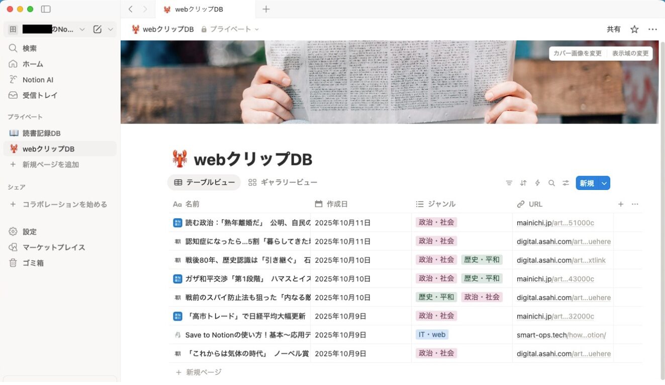 データの入口は違うけれど、保存したあといつでも簡単に読み直せる仕組みを作りたいという点はどちらも同じ。だったらNotionでいいか。